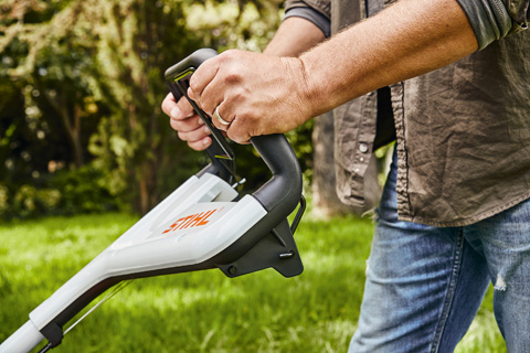 Dzięki składanemu uchwytowi, kosiarki STIHL można z łatwością transportować i oszczędzać miejsce podczas przechowywania kosiarki.