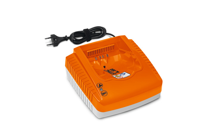 Do akumulatorów STIHL AK, AP i AR. Konstrukcja umożliwiająca mocowanie do ściany i zwijanie kabla, ze wskaźnikiem stanu pracy (LED) i aktywnym chłodzeniem akumulatora.